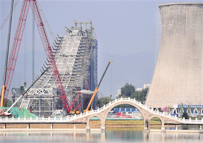 北京冬奥组委践行节俭办奥运,对首钢老工业园区再利用,建成滑雪大跳台等竞赛场馆。滑雪大跳台是冬奥历史上第一座与工业遗产再利用直接结合的竞赛场馆。图为2019年7月工人在改造滑雪大跳台。新华社记者 张晨霖 摄