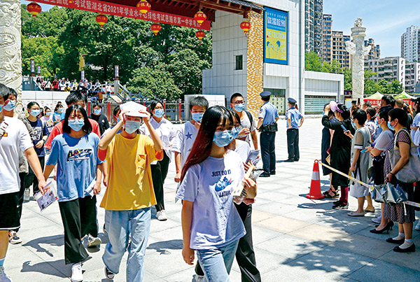 今年,湖北省普通高等学校招生考试采用“3+1+2”选考新模式。图为6月7日考试第一天,在湖北省恩施市第一中学考点,考生在首场考试结束后走出考场。谭华 摄