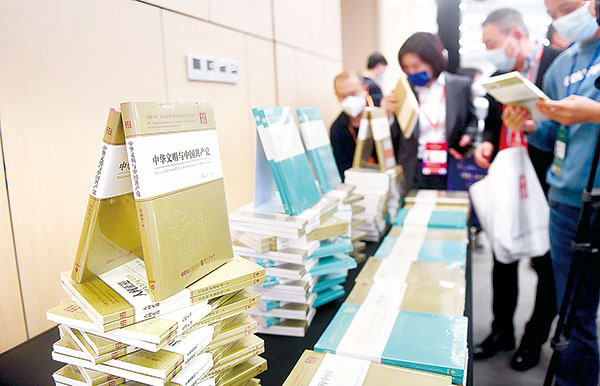 12月1日至4日,2021年“读懂中国”国际会议在广州举行。图为在“读懂中国”丛书(第二辑)揭幕仪式上拍摄的“读懂中国”丛书。 新华社记者 卢汉欣 摄