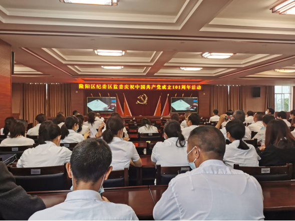 奋进新征程,建功新时代!在中国共产党成立101周年之际,7月1日,隆阳区纪委监委组织召开庆祝中国共产党成立101周年大会,纪检监察干部通过举行升国旗仪式、重温入党誓词、集中过政治生日和集中观看红色影片的方式庆祝党的生日,共同颂扬党的丰功伟绩,抒发对党的深厚情谊,动员全委上下进一步统一思想、振奋精神、开拓创新、扎实工作,以优异的工作成效迎接党的二十大胜利召开。