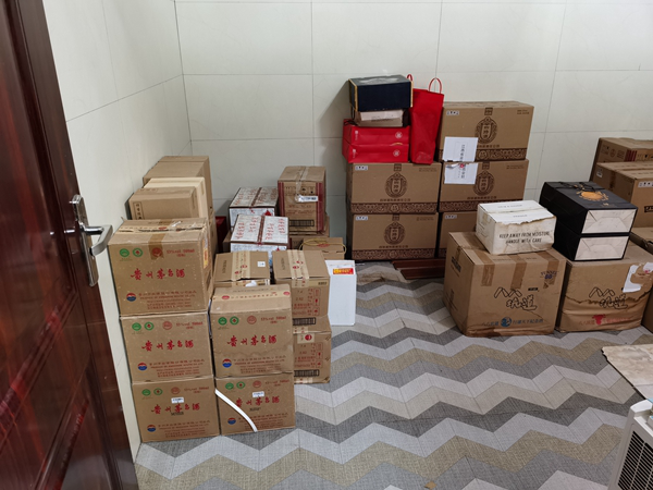 图为邓寄鹏收受的部分高档白酒。(江西省纪委监委供图)