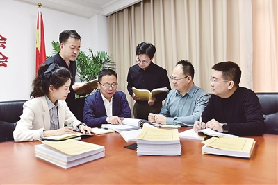 图为大连市纪委监委案件审理室工作人员围绕曲某案有关问题进行研讨。肖挺杨 摄