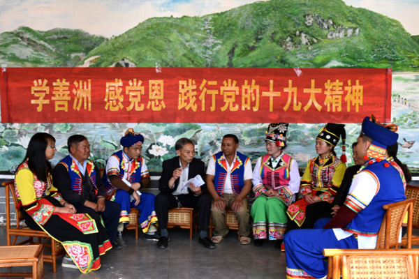 在木老元乡的布朗山寨,木老元乡纪委将党的十九大精神用本土语言编成宣传册下发至村民手中,并走村串寨地进行宣讲宣传。用群众听得懂、听得进的语言,把党的十九大精神带入基层,将报告中涉及“三农”、民生等方面的政策、方针向群众讲全、讲深、讲透,对群众的提出的问题进行耐心解答。