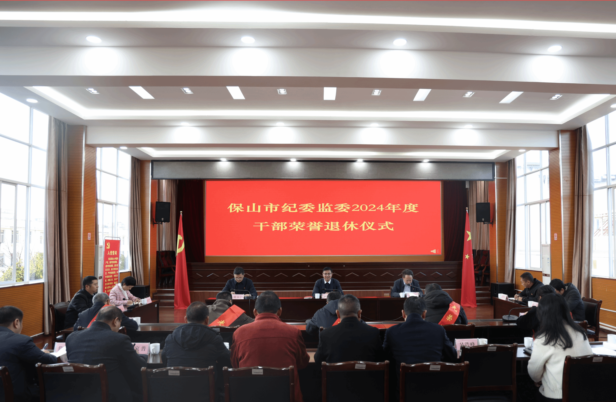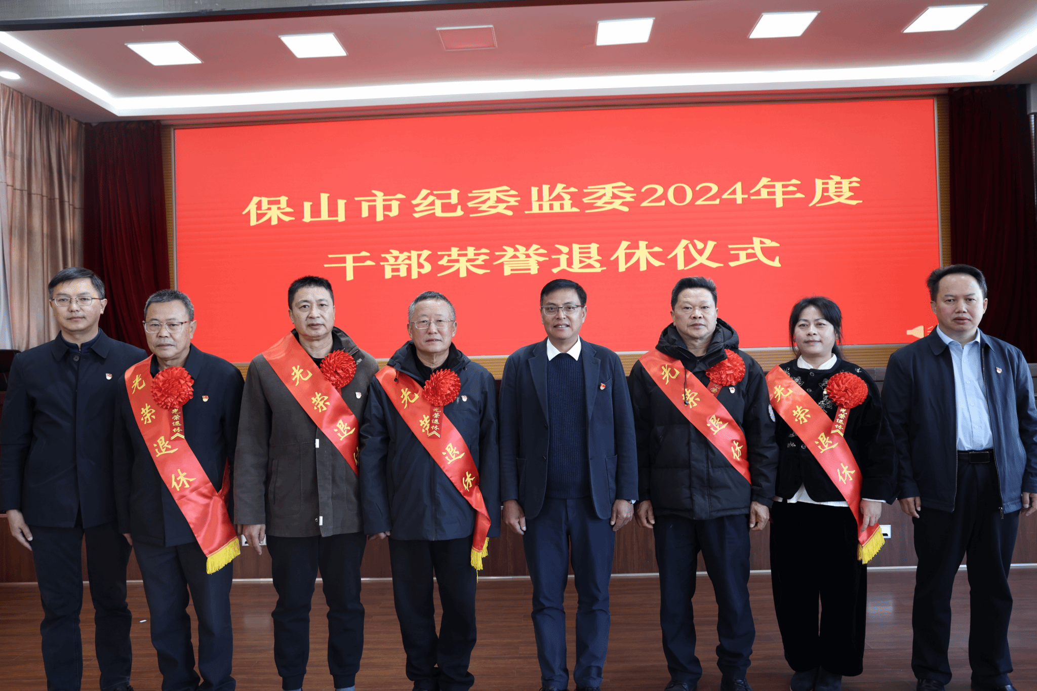 12月19日,一场既庄重朴素又热烈暖心的荣退仪式在保山市纪委监委举行,欢送为纪检监察事业一生勤勉、默默奉献的陈洪、罗红斌、孙正挺、陈昌荣、于虹等同志。