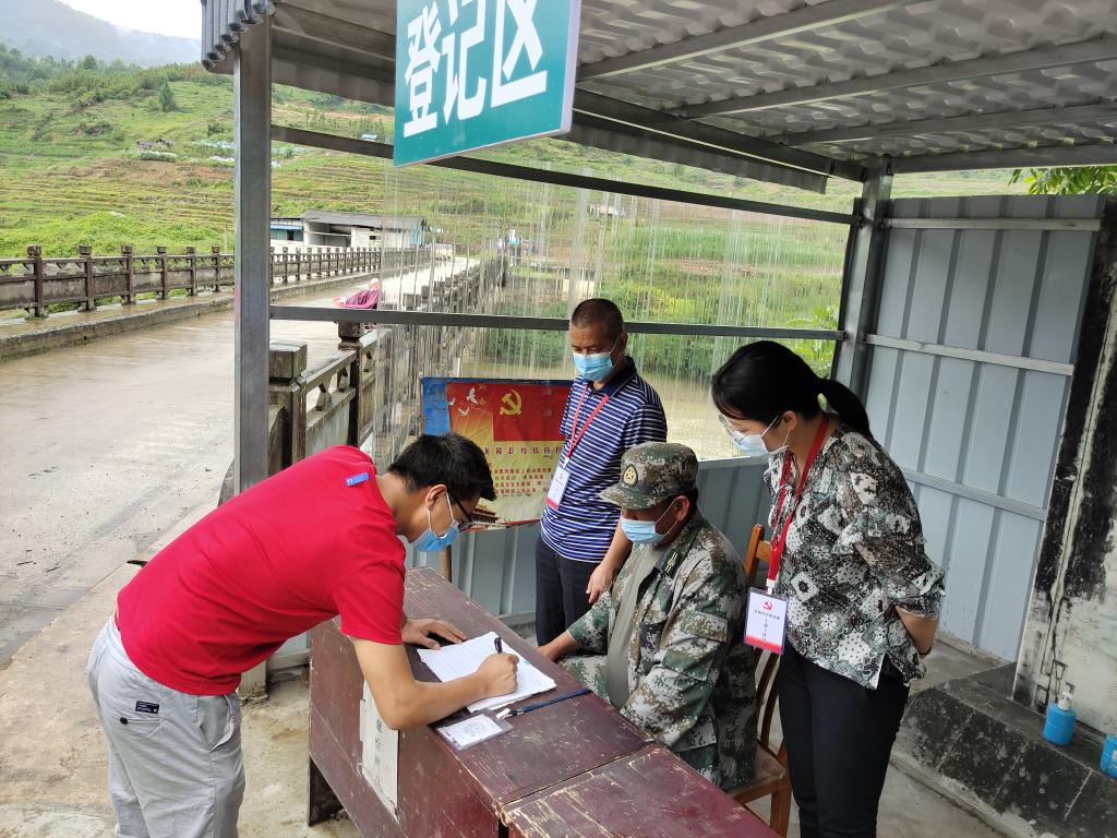 龙陵县纪委监委派出督查组对全县疫情防控情况开展监督检查,图为检查组在龙江乡佑民桥卡点查看人员出入登记情况。王龙芹/摄