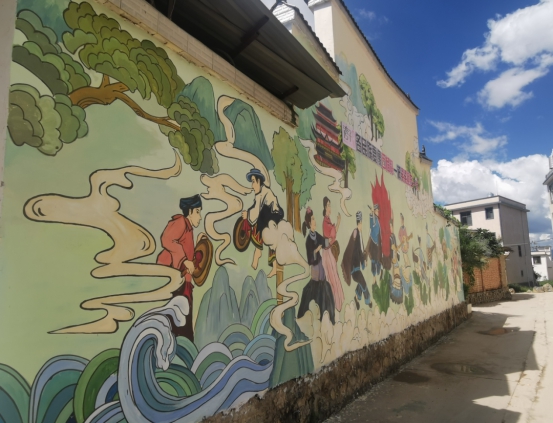 春天纸鸢飞、夏日钓鱼忙、秋来摘红柿、冬到炮仗响……墙体画的人物惟妙惟肖、生动活泼,风景以小见大、引人入胜。300平方米的墙体画融入了四季的儿时记忆、现代生活方式、生态文明、农耕文化、市域社会治理等多种元素。据社区党总支书记、居委会主任赵建生介绍,文化墙的绘制是社区尝试打造“巷道文旅”的第一步,既结合了基础设施实际,又整合了位置较好的两家餐馆。社区联合网格单位保山市公路局共同出资6.2万元,历时近两个月才最终完成这些墙体画。