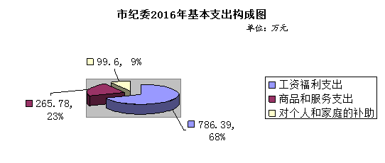 2016年用于保障保山市纪委正常运转的日常支出1,151.77万元。与上年对比增加184.63万元,增幅19.09%,主要原因如下:一是按照中央、省市有关规定,对在职人员及离退休人员的相关津贴补贴进行了调整,同时在职干部进行了正常调资,增加了相应的人员工资福利支出178.64万元;二是本年7月份开始实行公务用车改革增加了公务用车补贴支出79.44万元;三是由于单位开展厉行节约和出台相关内部控制制度,相关日常办公经费相应减少。基本支出包括基本工资、津贴补贴、对个人及家庭的补助支出等人员经费支出共计885.99万元,占公用经费的76.92%;办公费、印刷费、水电费、办公设备购置等日常公用经费共计265.78万元,占基本支出的23.08%。基本支出构成情况如下图所示: