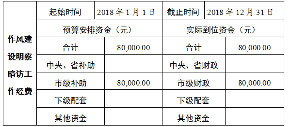 该项目年初预算资金为8万元,全部为市级财政资金,2018年度资金全部到位。