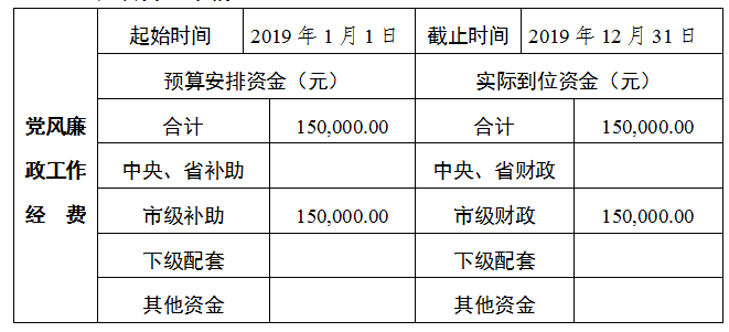 该项目年初预算资金为15万元,全部为市级财政资金,2019年度资金全部到位。