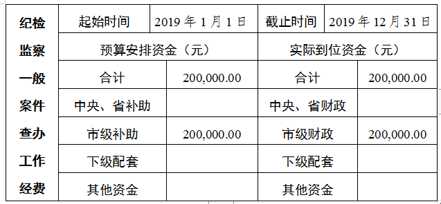 该项目年初预算资金为20万元,全部为市级财政资金,2019年度资金全部到位。