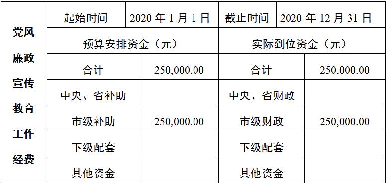 该项目年初预算资金为25万元,全部为市级财政资金,2020年度资金全部到位。