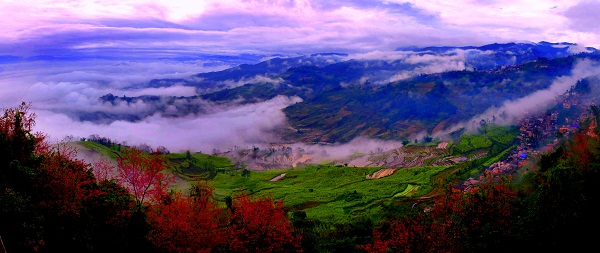 雨水到来天地欢,万物焕发新容颜。雨水滋润着梯田,山野万物复苏,清新空旷。(杨增辉 摄)