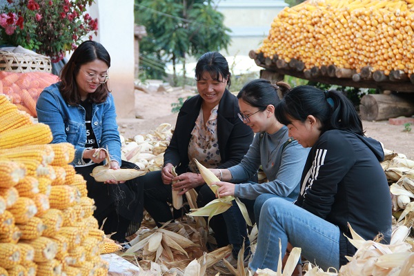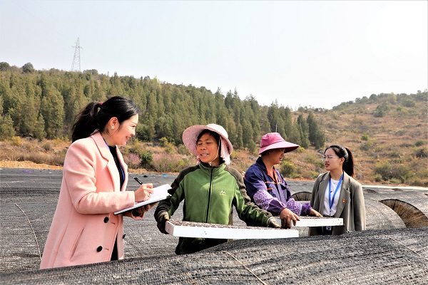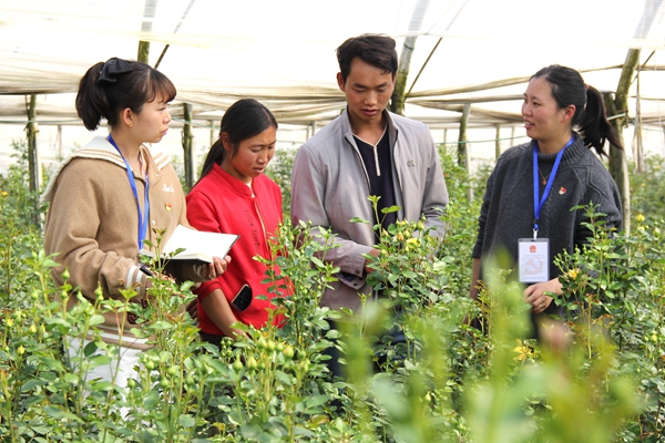 文山市纪委监委的女纪检监察干部们向村民了解春耕备种情况。(王铭坚 摄)