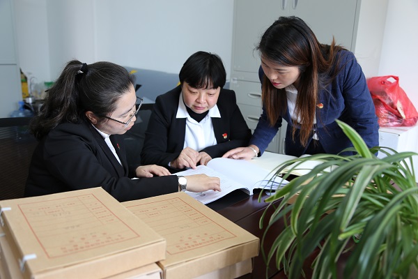 为加快调查工作进度,个旧市女纪检监察干部们仔细翻阅调取资料,及时汇总问题、探讨疑点,不放过任何蛛丝马迹。(魏润丽 摄)