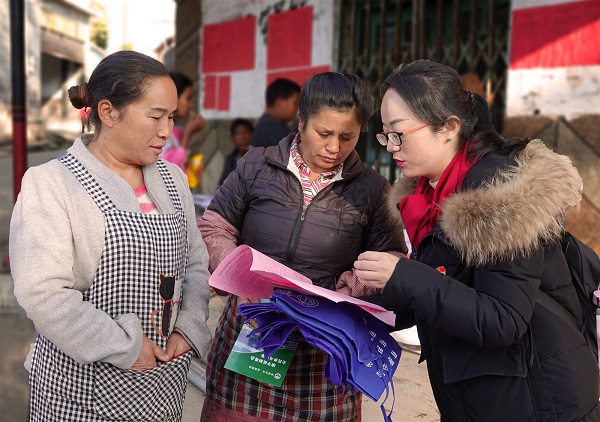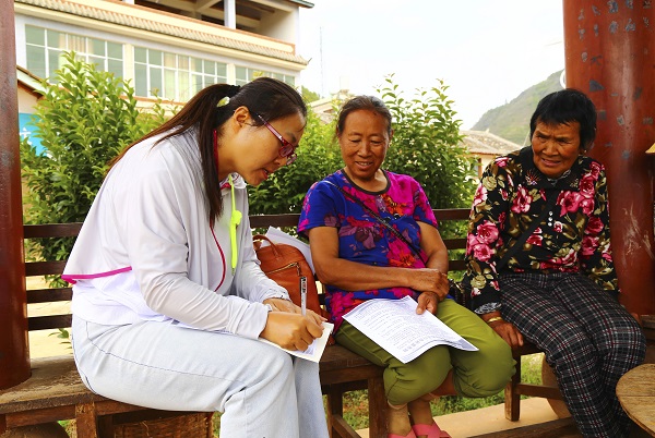 施甸县女纪检监察干部深入一线,详细了解群众生产生活中存在的困难和各项政策落实情况,认真把群众反映的诉求记录下来。(吴明凤 摄)