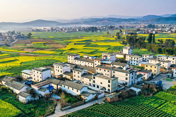 沉寂了整个冬天的田野焕发出勃勃生机,金灿灿的油菜花竞相开放,与脱贫后的农家别院交相辉映,形成了一幅美丽、和谐的乡村画卷。(李光洪 摄)