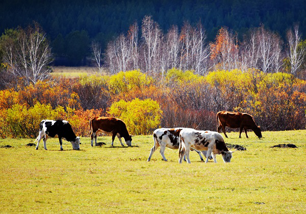 牛羊闲庭信步沐浴着春日的暖阳,草木的清香扑鼻而来,让人心旷神怡如痴如醉。(宋福伟 摄)