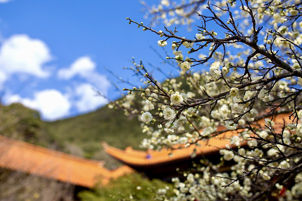辛丑早春,万物复苏,易门县白龙山的一树绿梅众芳竞放,繁花满枝。(施敏 摄)