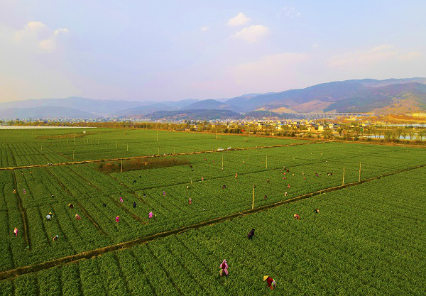 春意最浓在田间,春分田管正当时。在陆良县芳华镇雨补村的田间地头,农民正在进行春季田间管理,确保新的一年有个好收成。(王勇 摄)