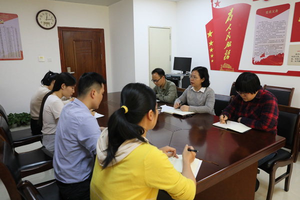 图为广西壮族自治区玉林市纪委监委案件审理室工作人员围绕栗利九案进行讨论。胡雄波摄