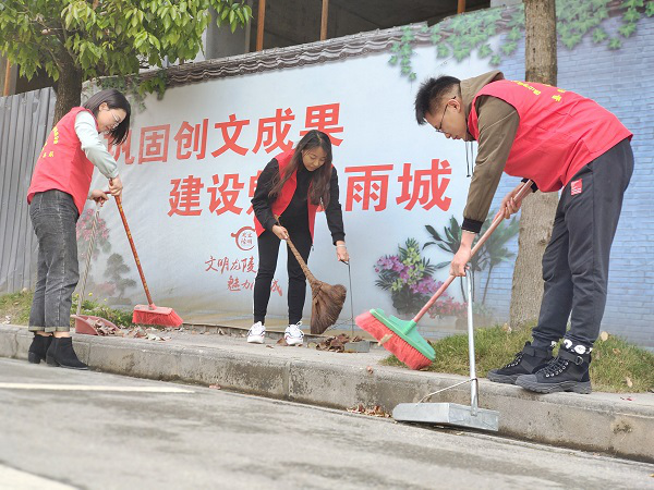 曲靖市纪委监委机关干部利用业余时间,经常性到机关办公区、街道、生活小区打扫卫生、清除卫生死角,用实际行动呵护干净整洁的环境。(徐天德 摄)