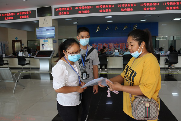 景谷县纪委监委工作人员结合端午节点,到县政务大厅开展督查,通过现场访问办事群众,严查侵害办事群众利益的问题。(石秉娟 摄)