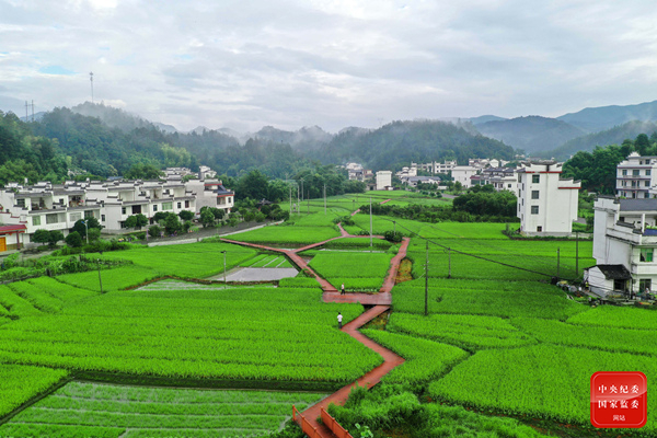 江西省赣州市上犹县持续推进高标准农田建设,投资修建水利工程,优化农业农村生态环境,助力农业高质量发展。图为该县梅水乡新建村田园里绿意盎然,美不胜收。(江西省赣州市上犹县纪委监委供 杨文国 摄)