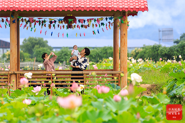大暑时节,热气升腾。荷间竹亭迎来三五成群的人们,伴着池塘蛙声枝头蝉,嗅得半亩方塘荷花香,享一时欢愉清凉。(福建省宁德市柘荣县纪委监委供 王志凌 摄)