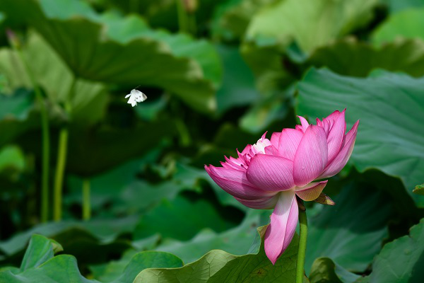 翻空白鸟时时见,照水红蕖细细香。(杨建成 摄)