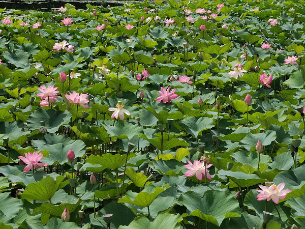 荷花盛开的季节,在荷叶衬托下,姿态万千,微风吹过,荷池清香阵阵,沁人心脾,夏日的暑气也因着这荷塘清凉不少。