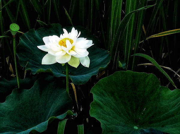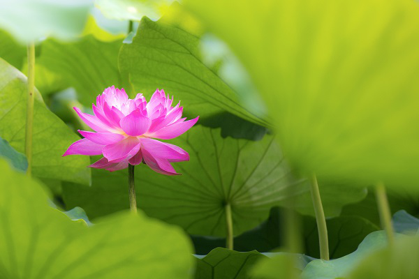 荷花入暮犹愁热,低面深藏碧伞中。(税昌海 摄)