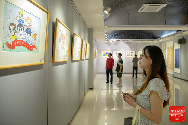 杭州市淳安县纪委监委举办“清廉淳安”书画展,把廉洁文化和传统书法、现代漫画结合,通过人民群众喜间乐见的艺术形式,展现廉洁文化的丰富内涵,引导全社会共创崇尚清廉的风气。(杭州市淳安县纪委监委 鲍宇晗 摄)