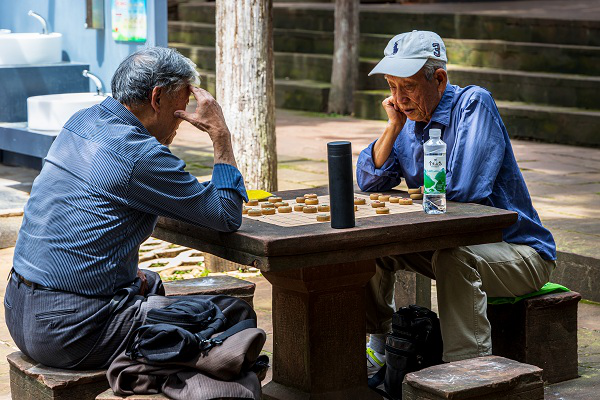 老人们早早来到公园下棋,享受晚年生活惬意时光。(王廷彪 摄)