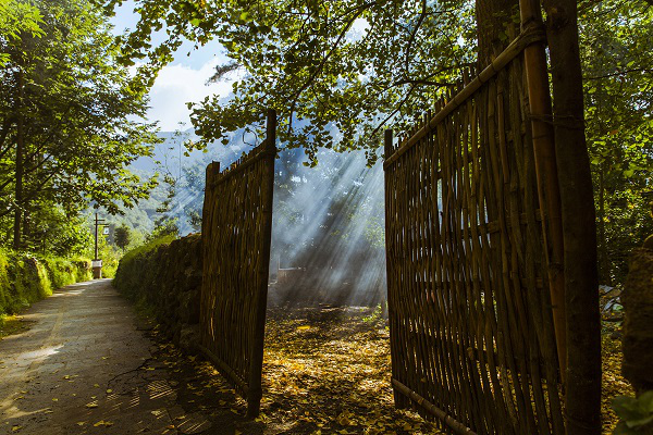 长满青苔的矮石墙、若隐若现的竹篱笆……人与景完美融合,随手一拍,都是美图。(张春艳 摄)
