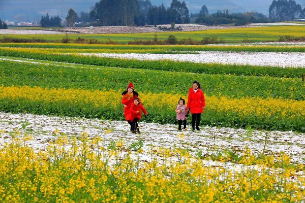 冬尽春将至,随着一场冬雪的降临,田间花间虽冰凌覆盖,但仍有几只“雪地精灵”在雪中欢舞,一切如梦似幻,充满生机。(方俊 摄)