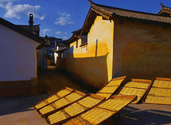 天到最寒年味浓。趁着冬日暖阳,将豆皮晾晒,在扑鼻的豆香中忙着备年货、迎新年。(蒋莉 摄)