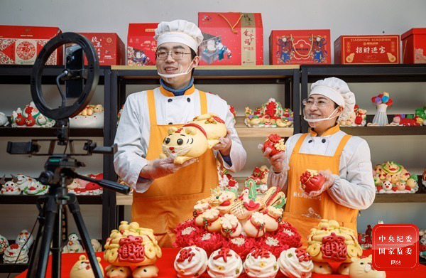 过大年,蒸饽饽,这是胶东传承许久的年俗之一,寓意来年日子“蒸蒸日上”。近年来,山东省威海市文登区花饽饽产业逐渐发展壮大,年产值达2亿多元,在外务工的青年人也纷纷回到家乡创业。(山东省威海市文登区纪委监委供 刘星 摄)