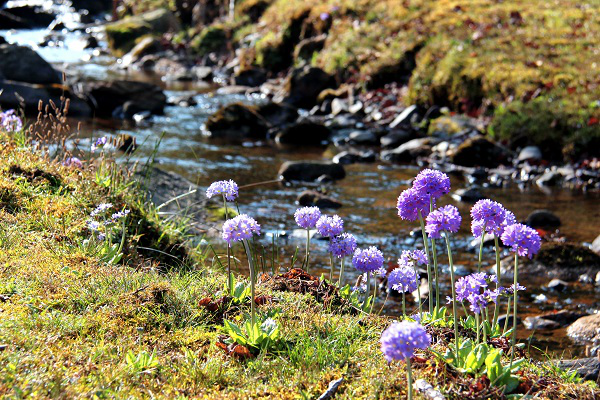 暖意融融的春光中,潺湲的溪水,踏着轻快的节奏淌过山野,清清曲水上,碧草如茵。紫色的春花也从草丛中纷纷探出头来,演绎着春的盎然和烂漫。(曹保相 摄)