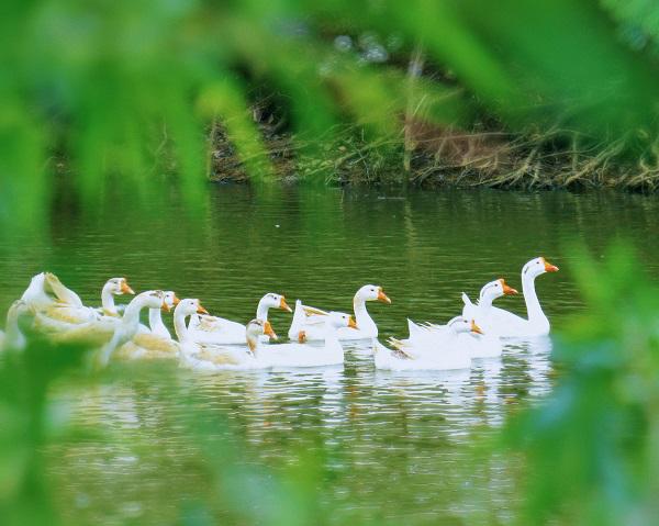 “竹外桃花三两枝,春江水暖鸭先知。”阳春三月,河水回暖,成群结队的鸭子纷纷下河嬉戏,感受春日的暖意。(冯雪娥 摄)
