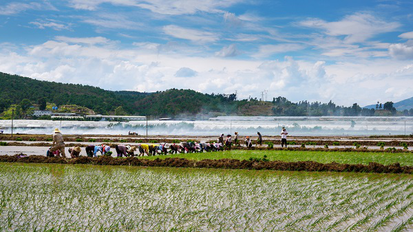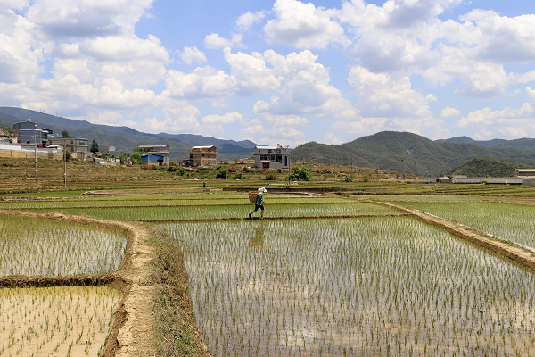 “小满不满,干断田坎”。小满前后,村民们及时将农田蓄满水,生机勃勃的田野即将呈现一年中最繁忙的景象。(盘文权 摄)