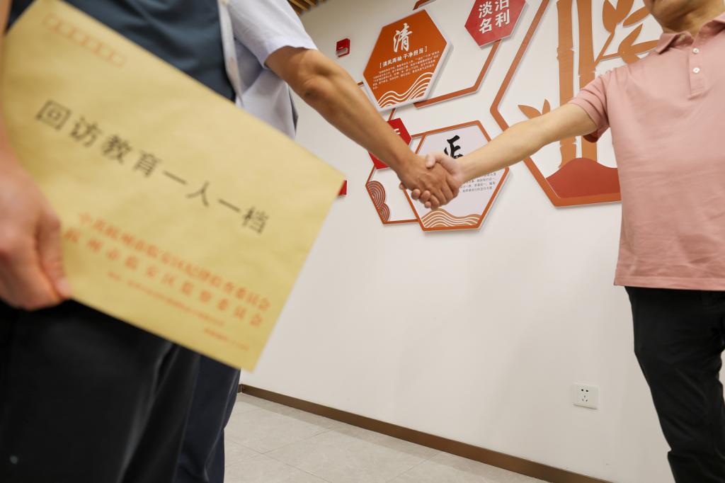 浙江省杭州市临安区纪委监委做细做实受处分干部回访教育工作,对症制定“一人一策”,形成“一人一档”,传递组织的关爱,激励受处分干部卸下包袱再出发。(浙江省杭州市临安区纪委监委供 韩艳微 摄)