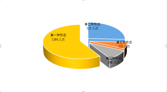 2022年,全市纪检监察机关运用“四种形态”批评教育帮助和处理2028人次。其中,运用第一种形态批评教育帮助1190人次,占总人次的58.7%;运用第二种形态处理525人次,占总人次的25.9%;运用第三种形态处理125人次,占总人次的6.2%;运用第四种形态处理188人次,占总人次的9.3%。