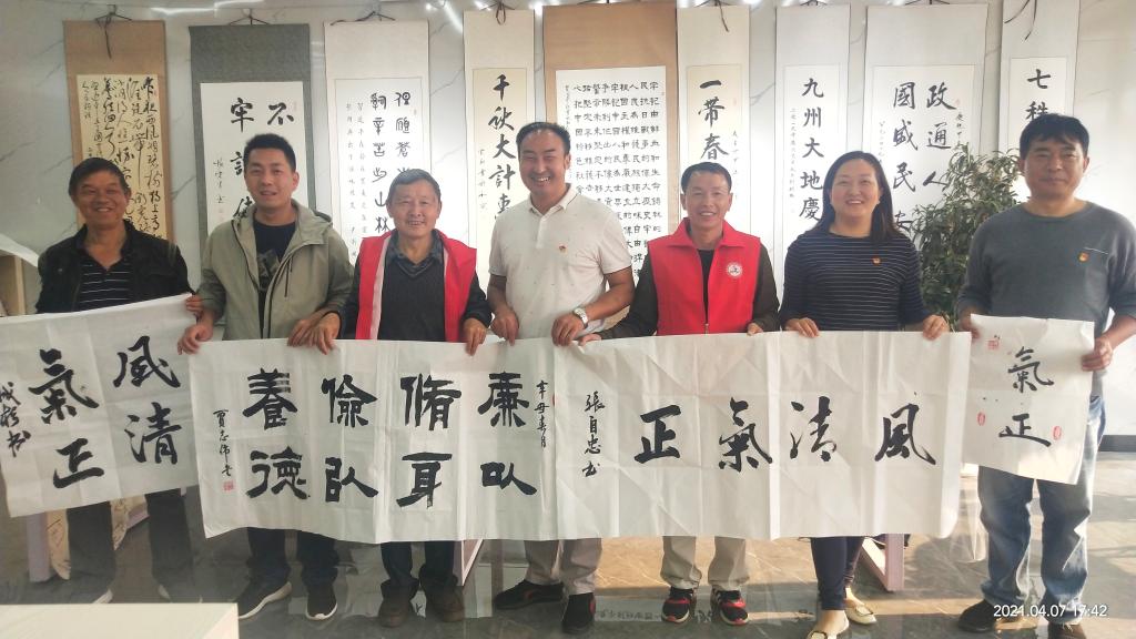 开展一次书法活动,弘扬廉政文化。4月7日,邀请市书法家协会的书法爱好者到腾冲市新时代文明实践中心参加了廉政书法活动,书法爱好者们挥毫泼墨,十余幅内容丰富、风格多样的书法作品应运而生,有以廉政廉洁为主题的格言、警句、诗词作品。通过开展廉政书法活动,广泛传播廉政理念,树立崇洁尚廉的价值观念,增强反腐倡廉意识,引导全体干部职工树立勤俭、廉洁、文明的思想观念。