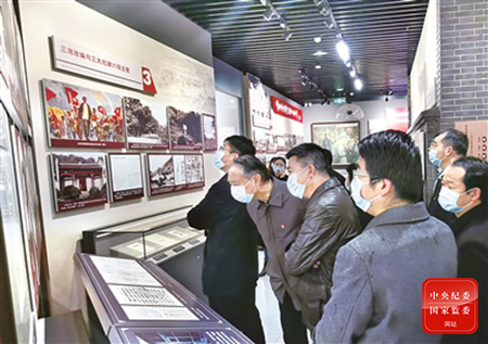 湖北省武汉市武昌区纪委监委近日组织党员干部到中国共产党纪律建设历史陈列馆开展党史学习教育活动。图为该区党员干部观看“三湾改编与三大纪律六项注意”展品。李国涛 摄