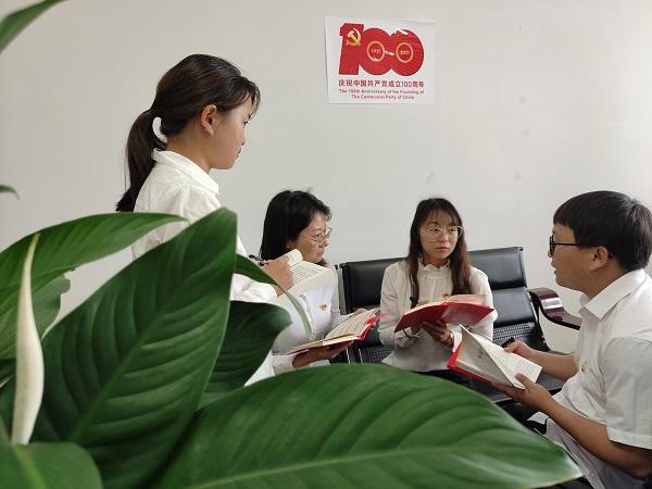 纪检监察干部以小组讨论的形式开展党史学习教育。(王龙芹 摄)