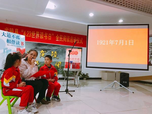 “4.23世界读书日”,纪检监察干部给孩子讲红色故事,教育引导孩子从小感党恩、听党话、跟党走。(岳正涵 摄)