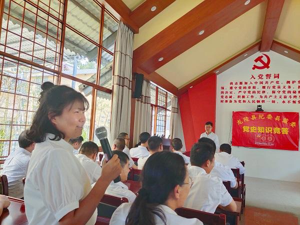开展党史知识竞答,竞答涵盖党建基础知识、党史、支部工作条例等内容。(王龙芹 摄)