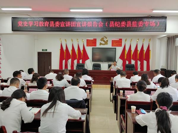 借助党史学习教育县委宣讲团宣讲报告会,教育引导纪检监察干部进一步坚定共产主义信仰,赓续精神血脉。(王龙芹 摄)