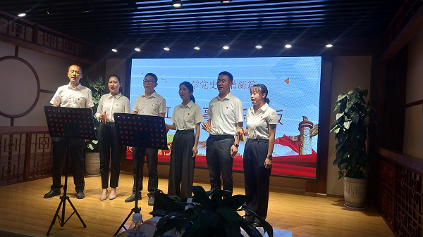 区纪委监委组织纪检监察干部排练党史音乐快板,并到文化馆为群众表演。